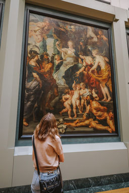 The architecture itself was a masterpiece. Light poured through glass ceilings, dancing across marble floors and gilded frames. Even the shadows felt intentional. I found myself photographing not just the exhibits, but the way the museum breathed—how people moved through it, how silence and sound coexisted.